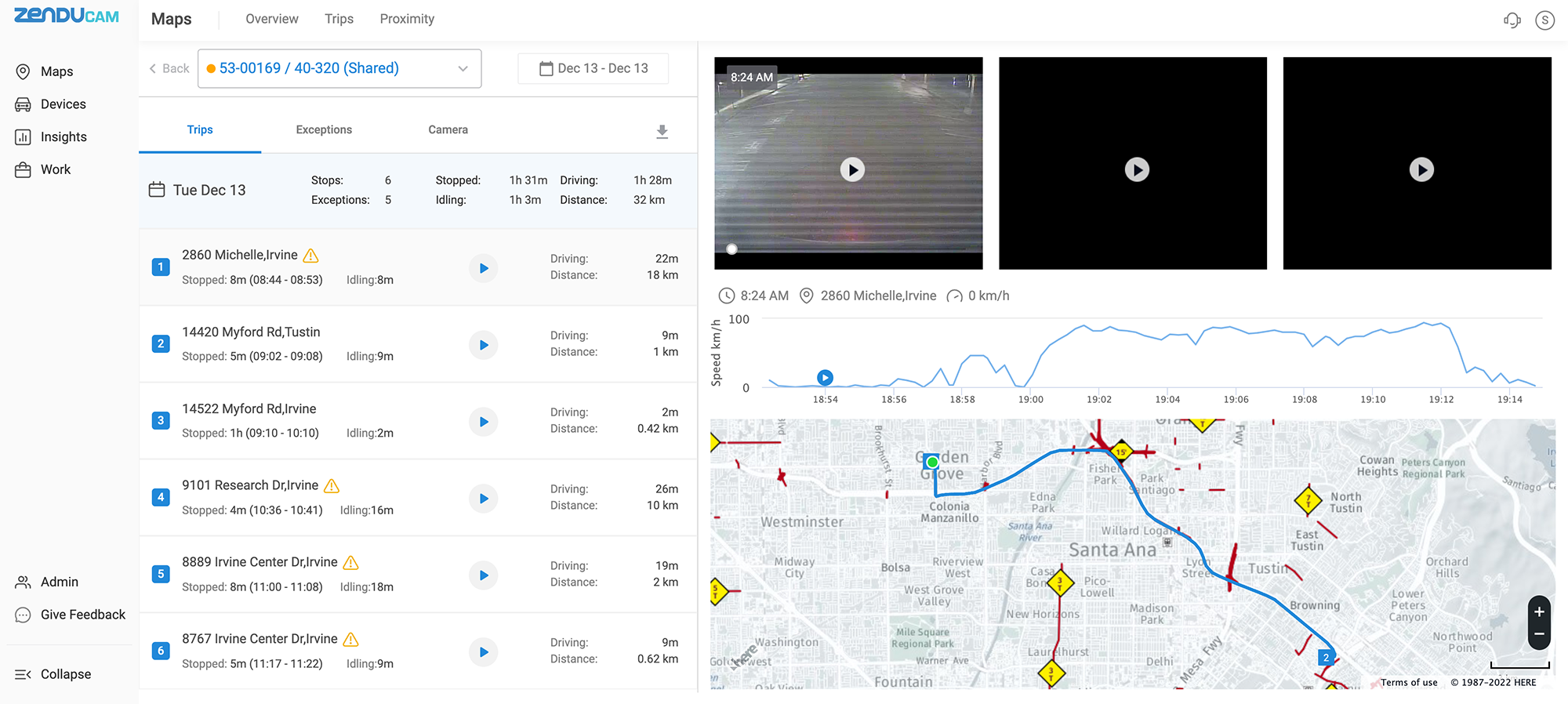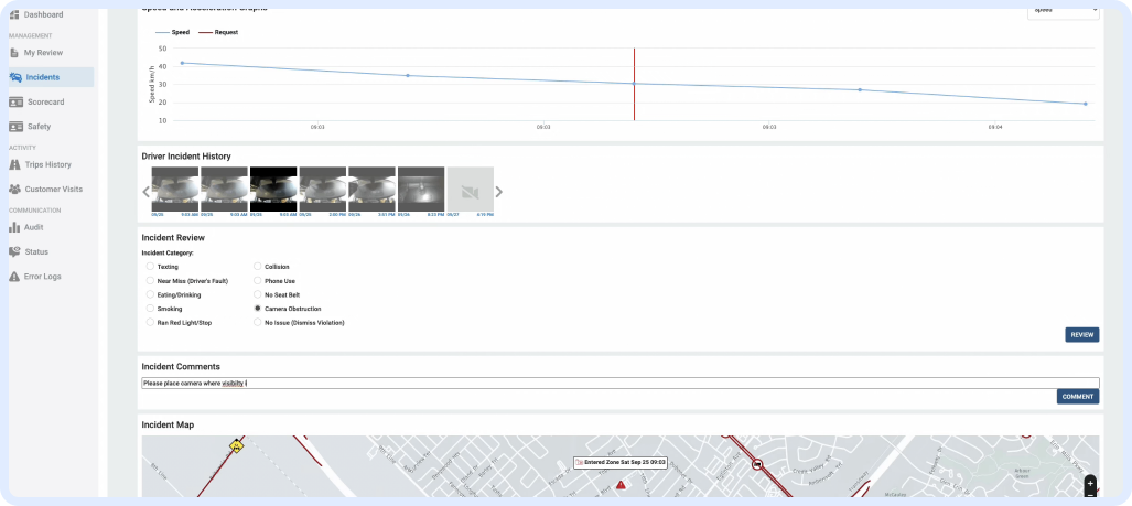 Context is important for harsh driving events. When unsafe driving behavior occurs, you can view the dashcam video to better understand what happened before and after and provide video evidence in the event of a false claim.